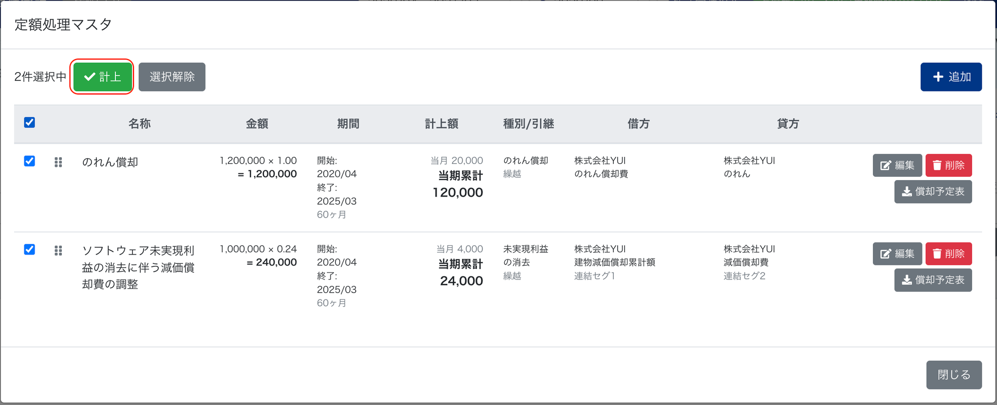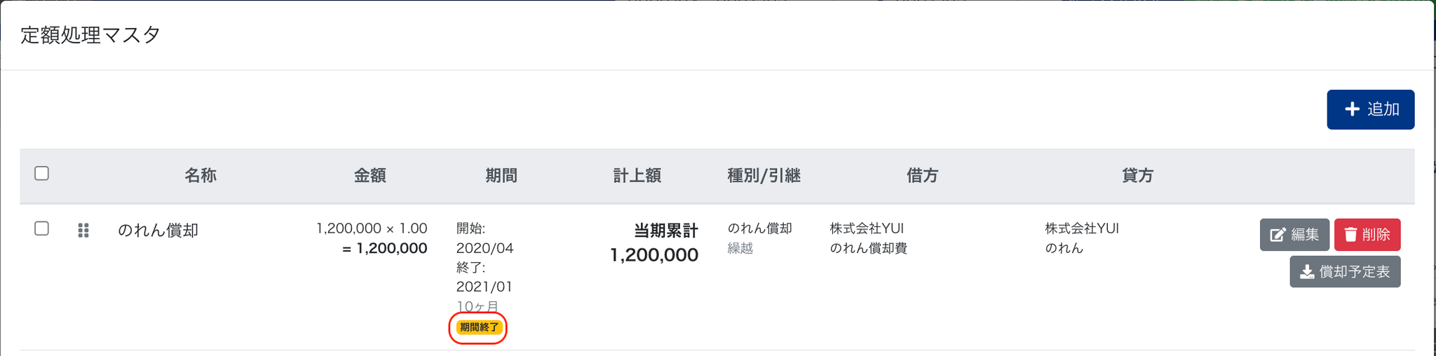 - 「翌期への引き継ぎ」区分はいずれも「なし」となり、当期で引き継ぎ完了の仕訳となります